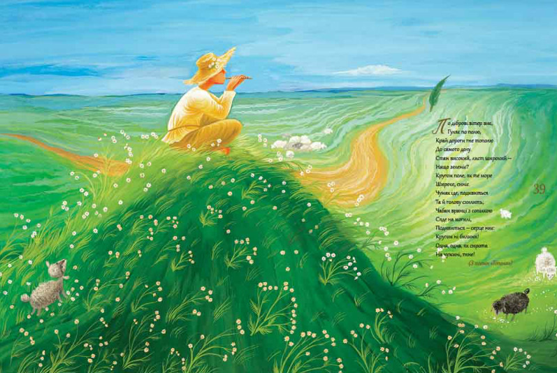 Здесь каждая иллюстрация не дополняет стихотворения, а рассказывает свою собственную историю, которую можно «читать» отдельно. Эта комбинация делает «Дитячий Кобзар» очень нежным изданием, пропитанным любовью в своей стране, которая передается через страницы.